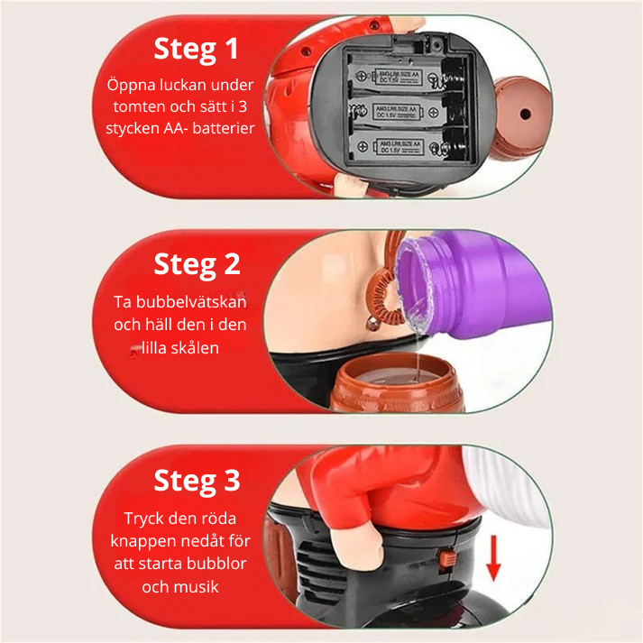 Bubbeltomten är inte bara en rolig pryl, den är den där lilla detaljen som gör hela julkvällen lättare, varmare och roligare. En pryl som får alla att slappna av, le och vara i nuet.